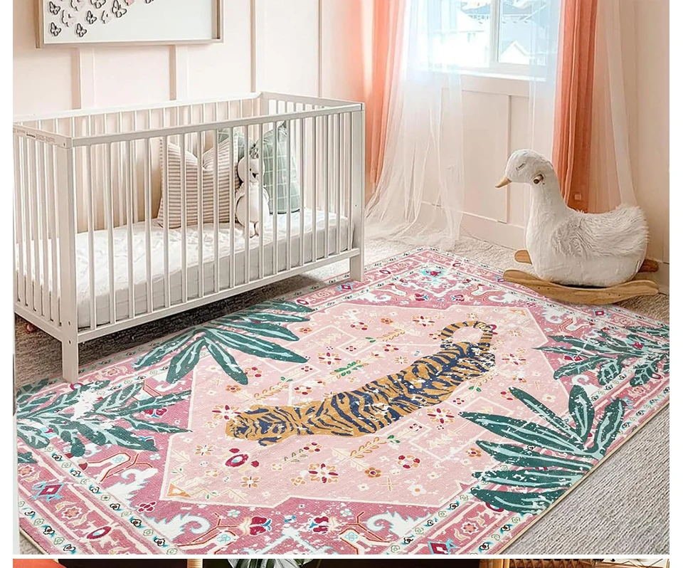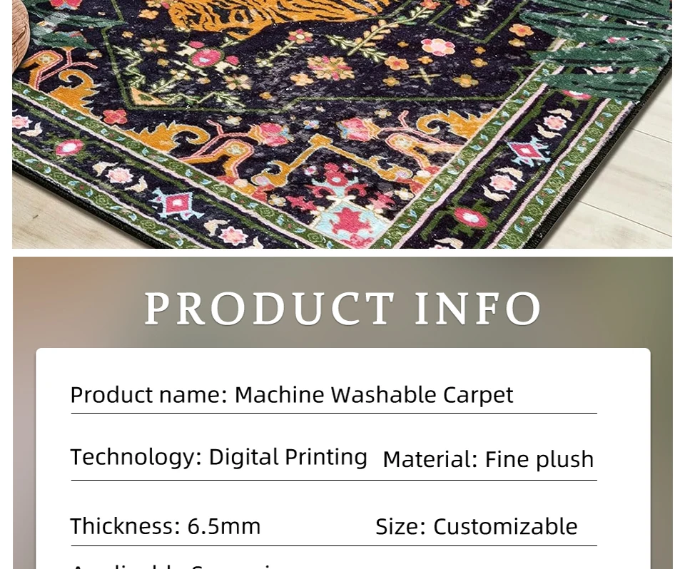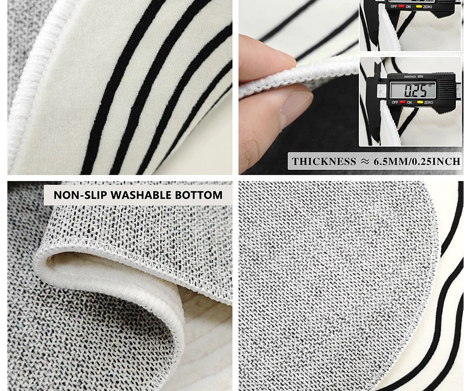 The fabric of this carpet has a soft and delicate short pile design, and the bottom is a washable foldable anti-slip bottom, which has a good anti-slip effect and supports folding without fear of creases. Of course, this carpet supports machine washability and is very convenient to clean.